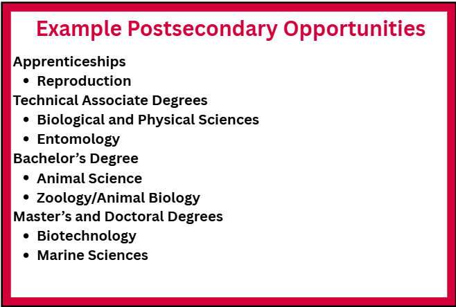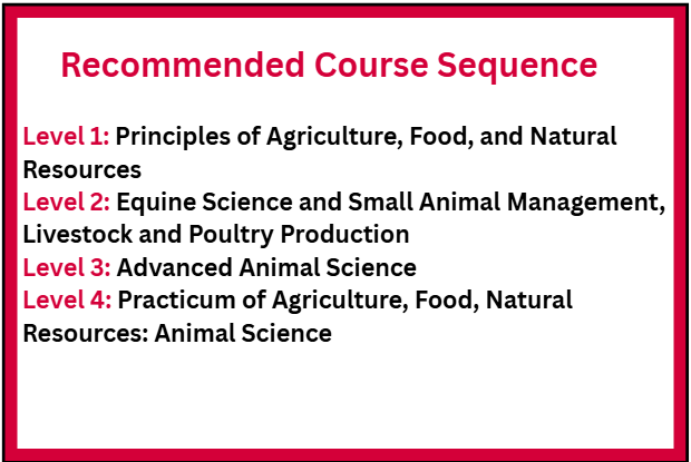 The Animal Science Program of Study focuses on the science, research, and business of animals used for labor and services as well as those that are raised for their meat, milk, and fiber. Students will be able to apply biology and life science to the management and production of animals in the field, laboratories, and agricultural businesses.