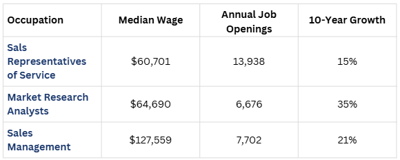 The Marketing and Sales program of study focuses on occupational and educational opportunities associated with collecting information to estimate potential sales of a product or service and create campaigns to market or distribute goods and services. It includes applying data related to customer demographics, preferences, needs, and buying habits.