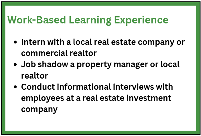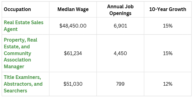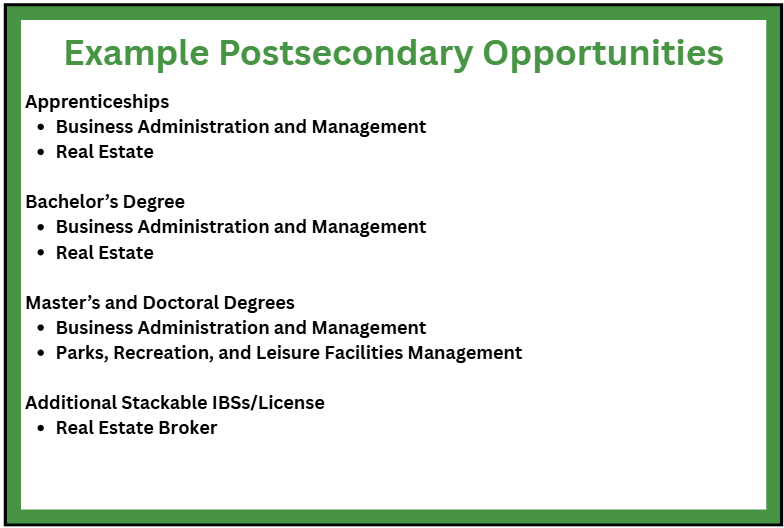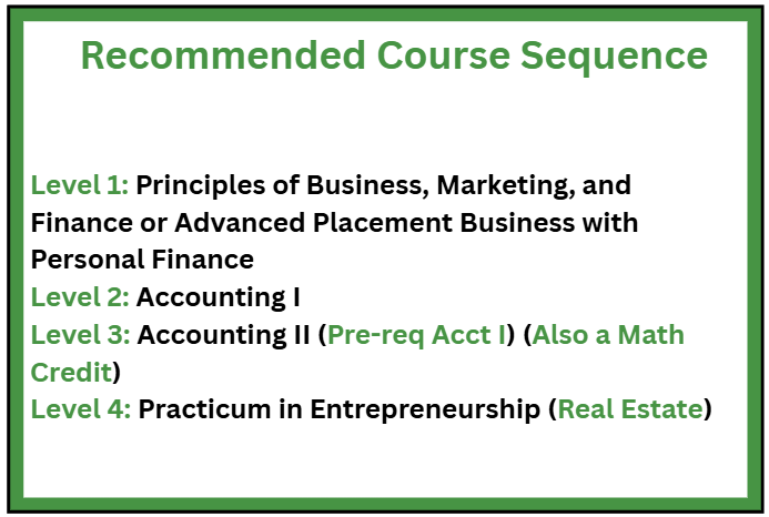 The Real Estate program of study focuses on occupational and educational opportunities associated with financing, selling, and contracting real estate. This program of study includes management, economics, marketing, and financial principles of real estate evaluation. It also addresses commercial real estate including lending, developing, brokering, and financing.