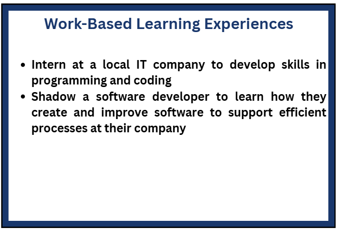 The Programming and Software Development program of study focuses on occupational and educational opportunities associated with researching, designing, developing, testing, and operating systems-level software, compilers, and network distribution software for medical, industrial, military, communications, aerospace, business, scientific, and general computer applications. This program of study includes creating, modifying, and testing the codes, forms, and script that allow computer applications to run