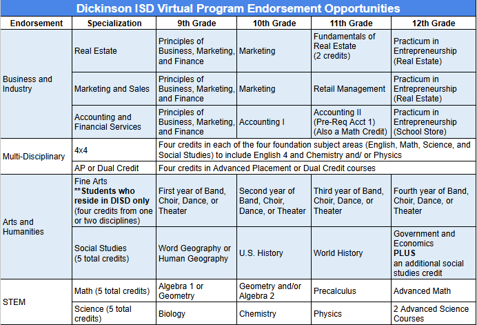 Yes. Students enrolled in the Dickinson ISD virtual program who reside within the Dickinson ISD school zone may participate in any UIL-sponsored extracurricular activity at Dickinson High School.