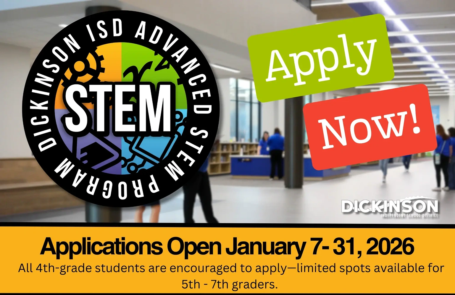 We hope this message finds you well. We are excited to share that applications are now open for families to apply for the DISD Advanced STEM Program for the upcoming academic year. All current 4th graders are encouraged to apply. Limited spots are available for 6th - 7th graders. Existing STEM students will also need to reapply; this will be done at school. The application deadline is January 31, 2026.