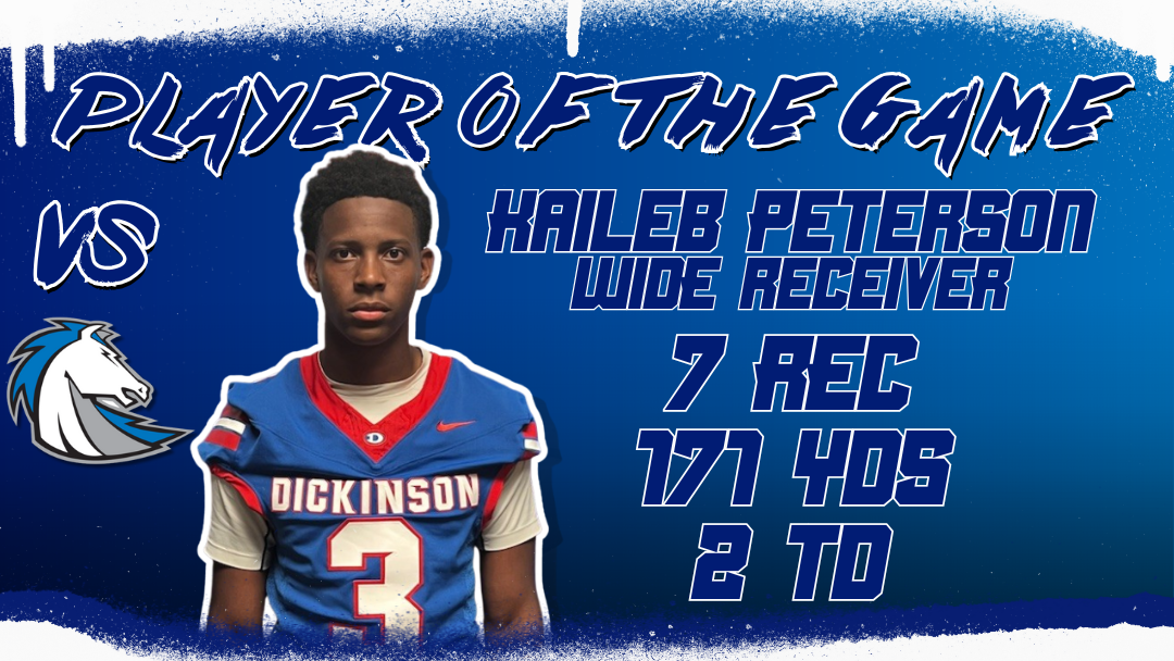 As Dickinson Gator Football battles through district opponents, we will spotlight and recognize one of our standout athletes whose performance, effort, and leadership made a major impact on the field. Player of the Game honors not only highlight big plays and key stats, but also celebrate the hard work and dedication that drive Gator Football forward.